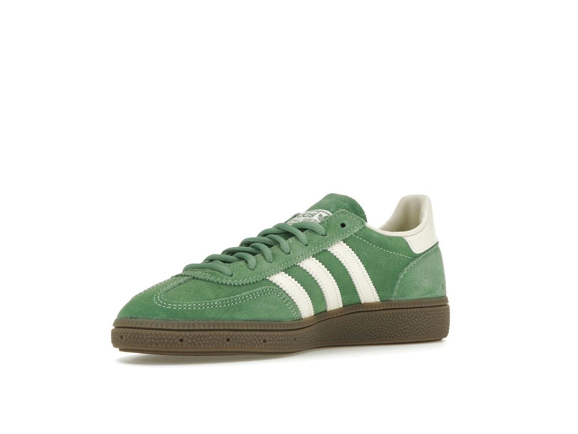 Confeccionadas con una lujosa parte superior de ante con paneles en un sofisticado Preloved Green, estas Adidas Handball Spezial lucen superposiciones de ante en la puntera y el talón para una mayor durabilidad y estilo. Las tres rayas distintivas de Adidas se muestran elegantemente en blanco crema en la entresuela, complementando la marca «SPEZIAL» dorada y el logotipo del trébol en el lateral. Un cuello del talón a juego en blanco crema le da un toque refinado.