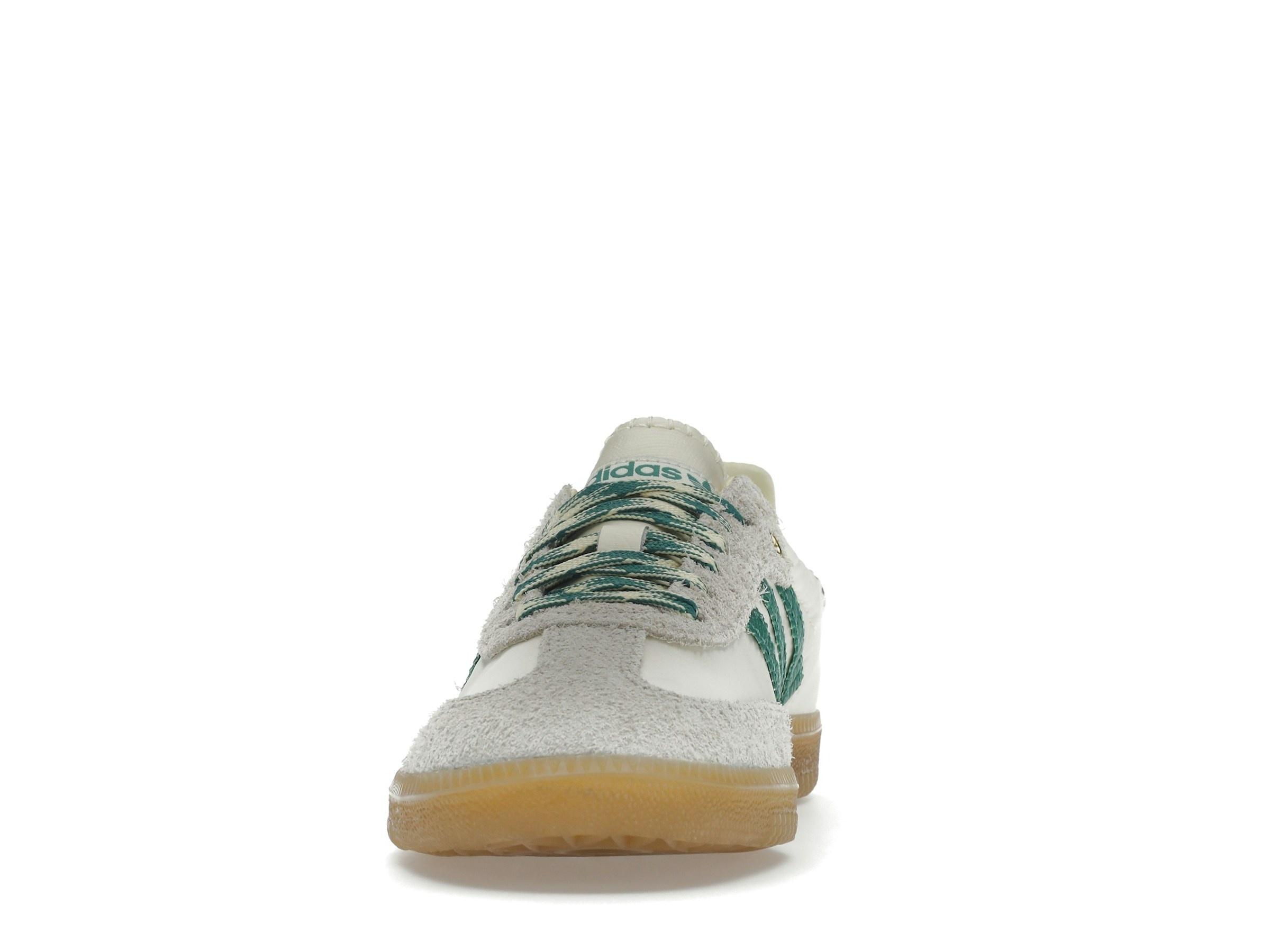 Eleva tu estilo con las Adidas Samba Wales Bonner Cream Green Leather Trainers (GY4344). Estas icónicas zapatillas combinan a la perfección el diseño clásico de las Samba con un toque lujoso y contemporáneo, cortesía de Wales Bonner. La parte superior de cuero blanco cremoso proporciona una base impecable, complementada a la perfección con superposiciones de ante peludo en el antepié que aportan un toque de textura y profundidad.