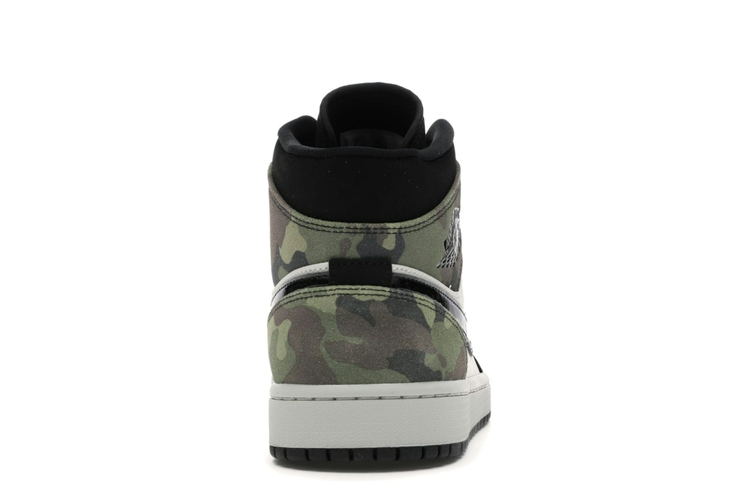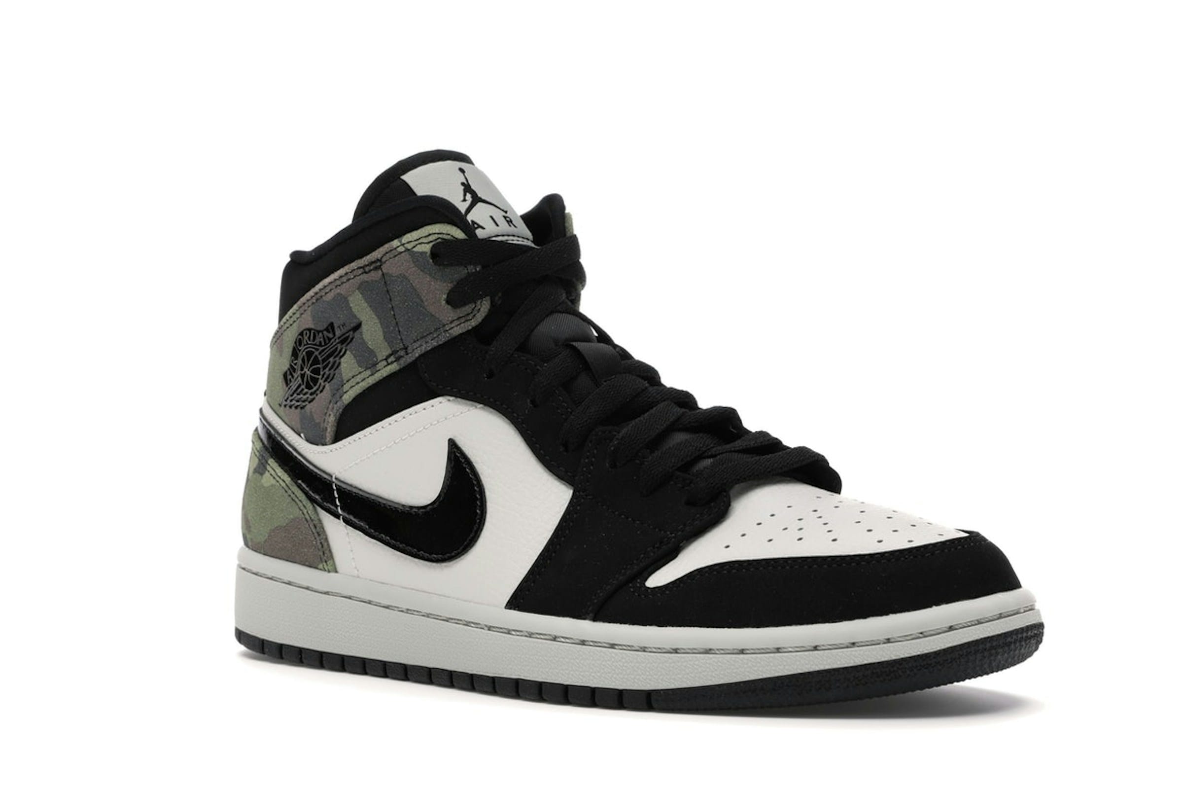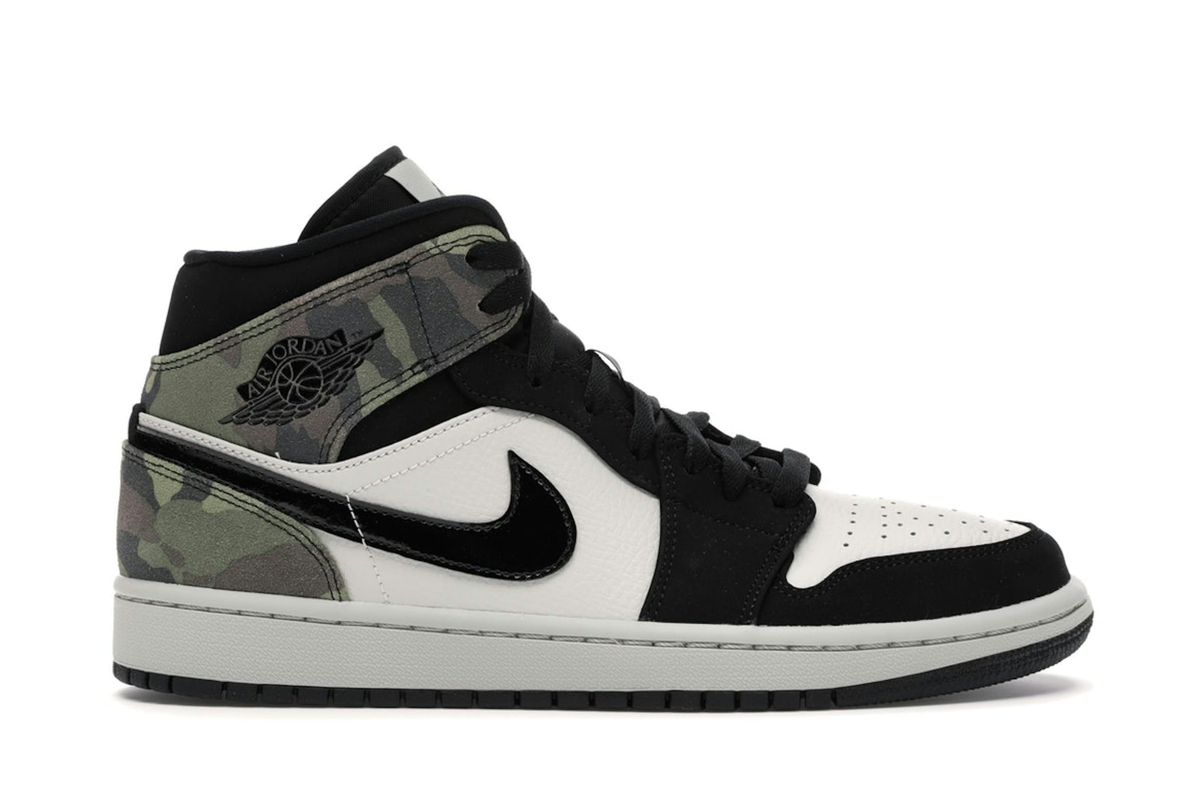 Las Air Jordan 1 Mid Camo presentan una impactante combinación de texturas y colores. Los detalles en negro oscuro en la puntera, los ojales y la lengüeta contrastan marcadamente con el estampado de camuflaje. El característico logotipo Swoosh luce un elegante diseño en blanco y negro, que añade un toque de sofisticación. Materiales de primera calidad, como las capas de cuero abatanado y charol, garantizan comodidad y durabilidad.