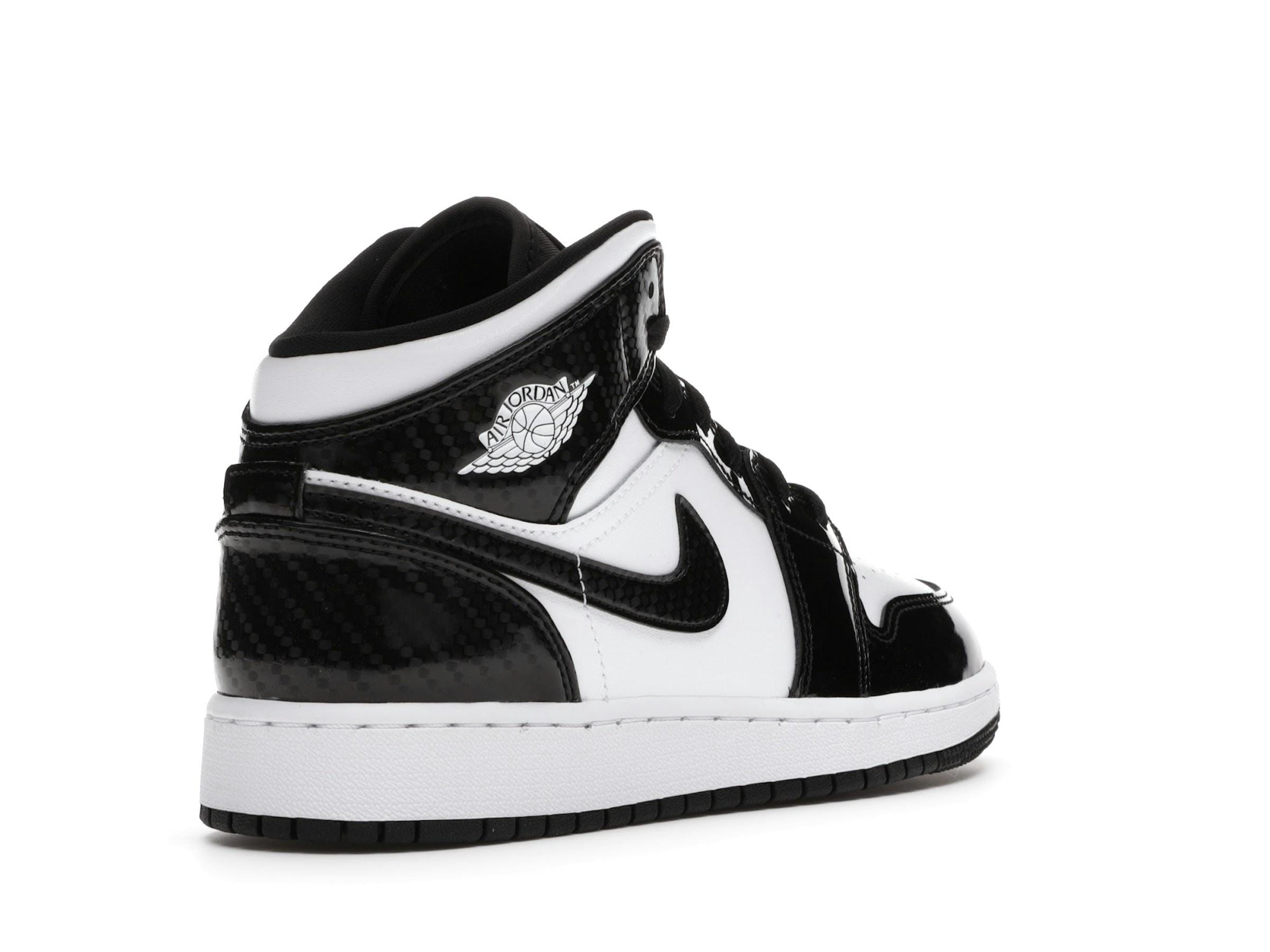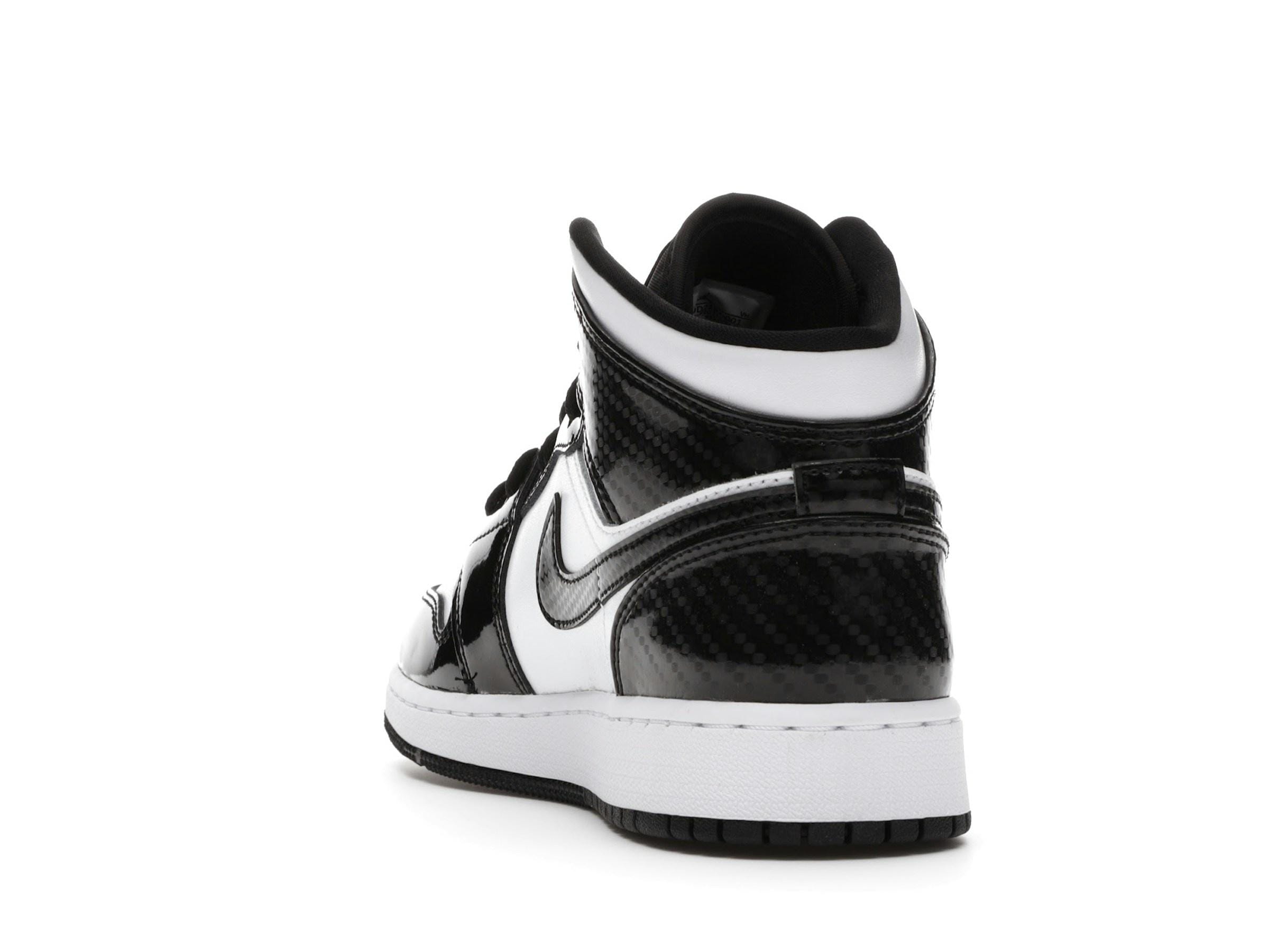 Experimenta las icónicas Air Jordan 1 Mid SE All-Star Carbon Fiber (GS) en una impactante combinación de blanco y negro. Estas zapatillas, de tamaño escolar, lanzadas en marzo de 2021, son imprescindibles tanto para coleccionistas como para aficionados. Parte de la colección especial All-Star, este diseño rinde homenaje al clásico de mitad de temporada de la NBA. La zapatilla luce una parte superior de cuero blanco de primera calidad que proporciona comodidad y estilo. Una característica destacada son los llamativos detalles de fibra de carbono sintética en el Swoosh, el cuello del tobillo y el talón, que aportan un toque moderno a la silueta clásica. Este elemento texturizado contrasta a la perfección con el cuero blanco impecable, creando un diseño visualmente atractivo. La lengüeta negra y el logotipo Jumpman blanco impecable, sutilmente bordado en la lengüeta, la plantilla y el cuello, realzan aún más su atractivo estético. Esta atención al detalle demuestra la calidad artesanal que define al calzado Air Jordan. La cómoda entresuela acolchada garantiza un uso duradero durante todo el día, mientras que la resistente suela exterior de goma negra proporciona una excelente tracción.