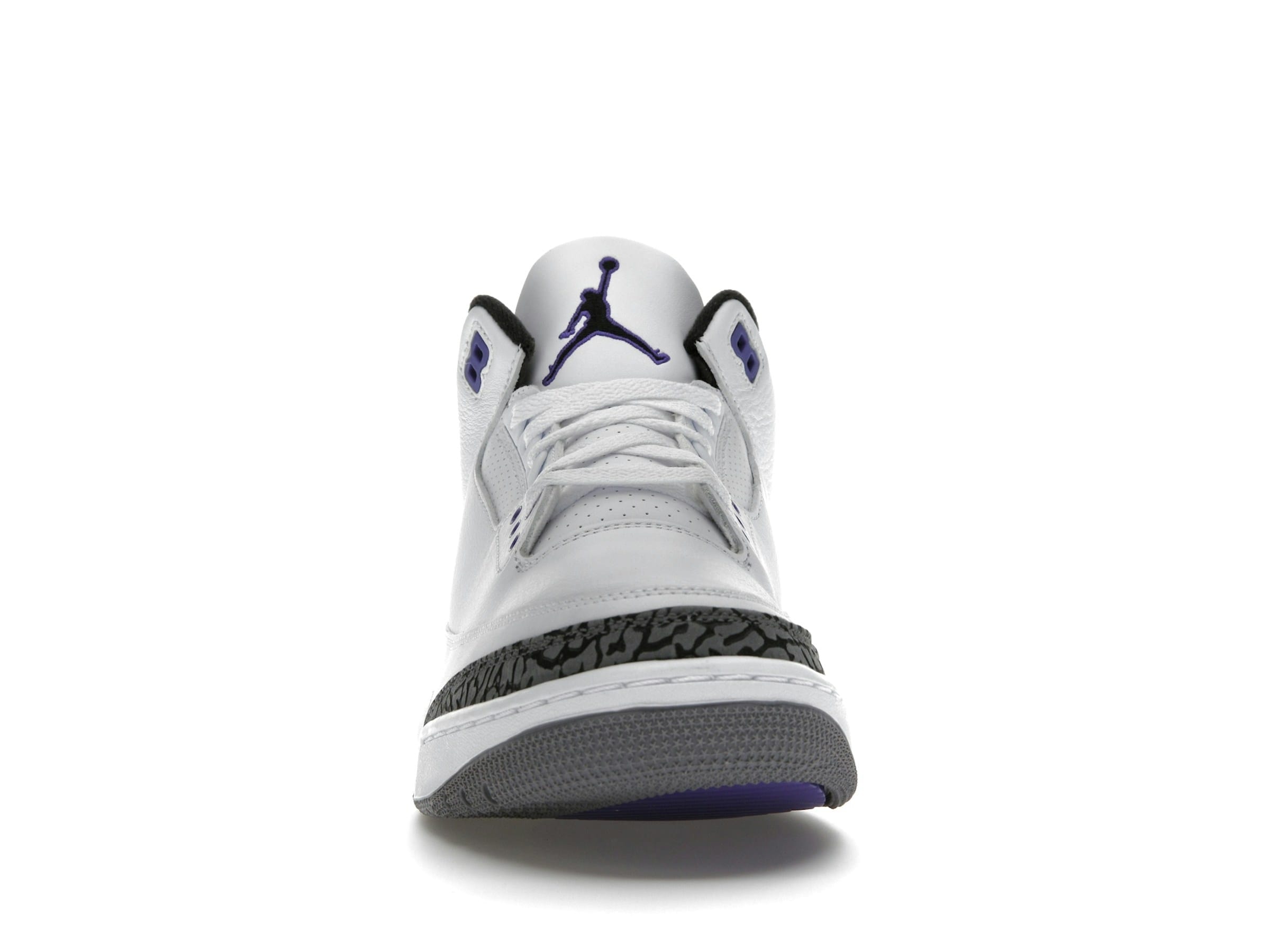 Luce un estilo único con las Air Jordan 3 Retro Dark Iris, unas llamativas zapatillas altas que combinan un diseño clásico con un toque moderno. Esta icónica silueta luce una construcción de cuero premium, predominantemente blanco, que crea una base limpia y versátil.