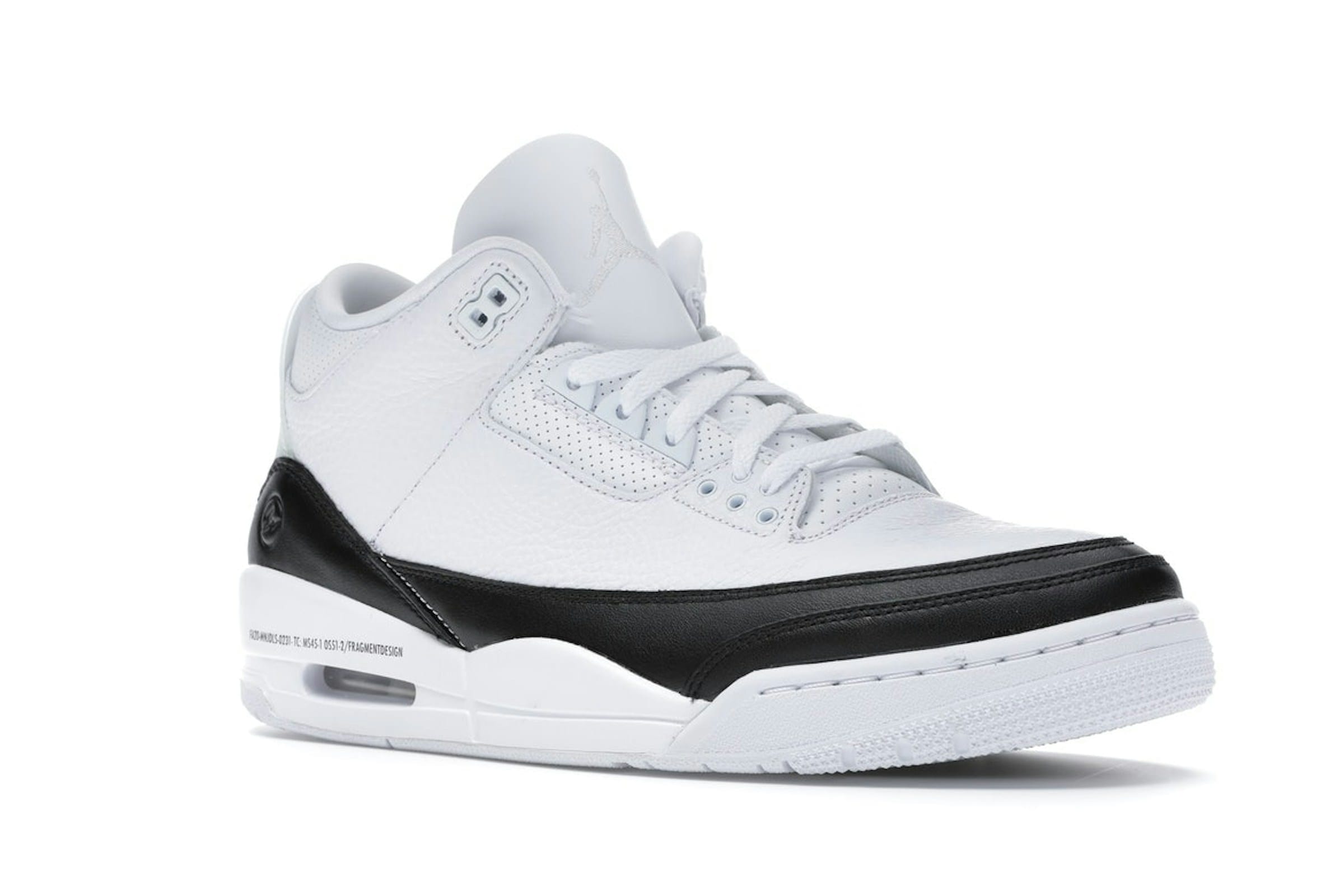 Las Air Jordan 3 Retro Fragment, una colaboración muy solicitada, marcan el regreso al diseño clásico de Jordan con un toque moderno. Este lanzamiento sigue la popular colaboración de las Air Jordan 1 de 2015 con el fundador de Fragment Design, Hiroshi Fujiwara, diseñador conocido por su trabajo con marcas como Louis Vuitton, Anti-Social Social Club y Pokémon. Fieles a la estética minimalista de Fujiwara, las Air Jordan 3 Fragment lucen una impecable combinación de blanco y negro. Una parte superior de cuero blanco impecable contrasta marcadamente con un guardabarros de cuero negro de plena flor, que reemplaza el icónico estampado de elefante de las Jordan 3 originales. El sutil pero llamativo añadido es el logotipo del rayo de Fragment grabado en el cuero negro, un elemento distintivo de la colaboración. La entresuela blanca presenta el código de estilo y la fecha de lanzamiento impresos en negro.