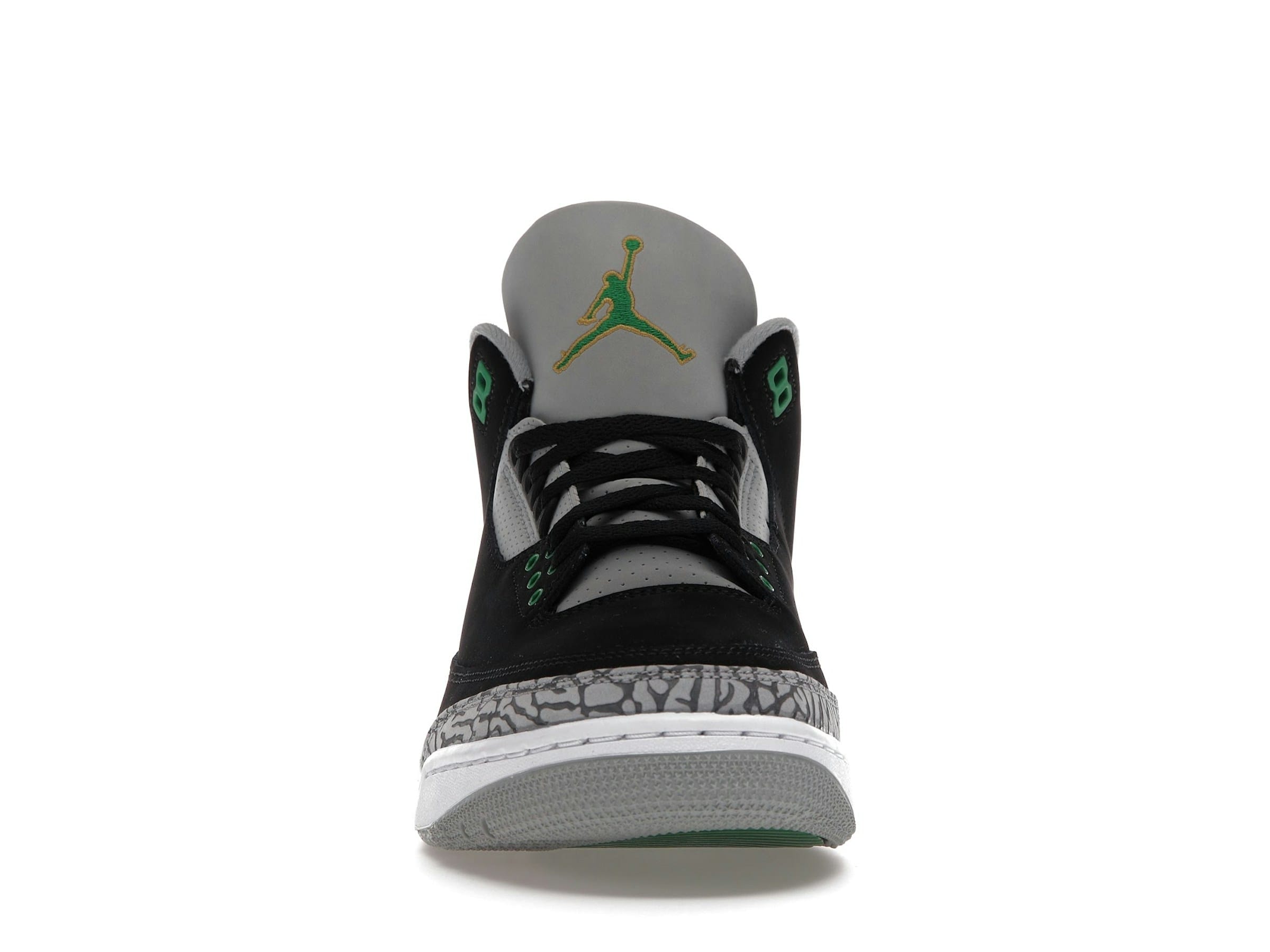 Experimenta las icónicas Air Jordan 3 Retro en una paleta de colores fresca y vibrante. La edición Pine Green luce una parte superior premium de Durabuck negro, acentuada por las reconocibles superposiciones con estampado de elefante. Esta silueta clásica se realza con toques de Pine Green, sutilmente incorporados en el cuello perforado y la entresuela, creando un contraste impactante con la base neutra. Detalles como el bordado Jumpman en la lengüeta y la lengüeta del talón añaden la marca Jordan, mientras que la suela Air visible proporciona comodidad y estilo. Lanzadas en octubre de 2021, estas zapatillas combinan a la perfección el diseño retro con un toque moderno. La combinación de negro, plateado, blanco y verde pino crea una zapatilla versátil que combina a la perfección con diversos atuendos. Las Air Jordan 3 Pine Green son imprescindibles tanto para coleccionistas como para amantes de las zapatillas. Su construcción duradera y su ajuste cómodo las hacen ideales para el día a día, mientras que su diseño atemporal garantiza que se mantendrán como una opción elegante durante años. Esta icónica zapatilla es un testimonio del legado de Jordan y su influencia duradera en la cultura de las zapatillas.