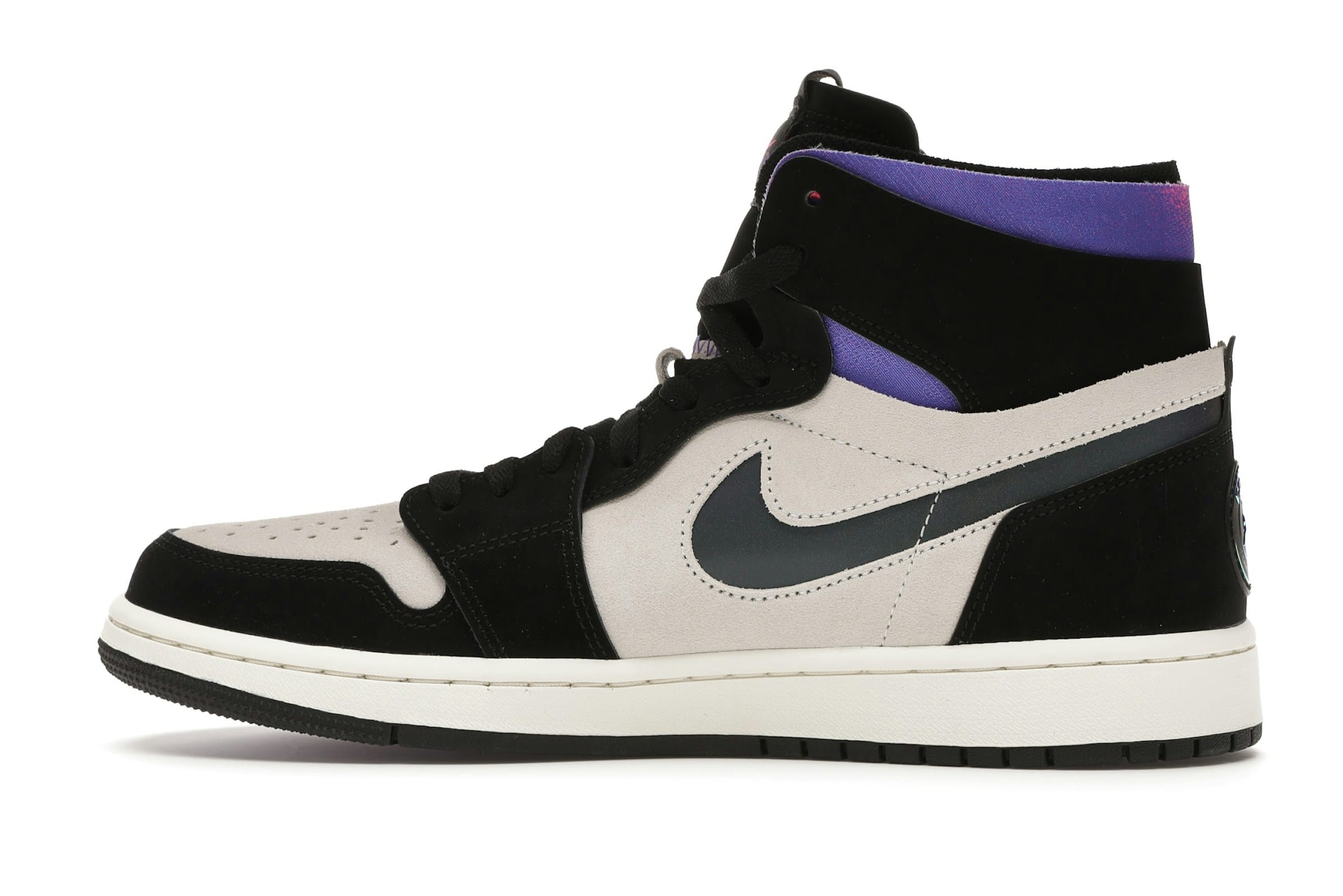 Las Jordan 1 High Zoom Air CMFT PSG, una colaboración entre Jordan Brand y el Paris Saint-Germain, ofrecen una elegante combinación de tradición baloncestística y estilo futbolístico. Este diseño único presenta una parte superior Durabuck premium en blanco roto y negro, que proporciona durabilidad y un aspecto sofisticado. Incorporan un llamativo Swoosh recortado iridiscente y reflectante, que aporta un toque moderno a la silueta clásica. Para realzar su estética única, un vibrante tejido degradado en morado y rosa envuelve el tobillo, complementando el degradado de color similar dentro del logotipo de las Alas. Un sutil pero llamativo motivo iridiscente de Jordan PSG en la parte trasera del talón refuerza el carácter colaborativo de este lanzamiento. La construcción sin rematar alrededor del tobillo permite vislumbrar la cómoda amortiguación de espuma morada, realzando tanto el estilo como la comodidad. El diseño se completa con una entresuela blanca impecable y una suela exterior negra, que conserva la estética tradicional de las Jordan 1 e incorpora los detalles distintivos de esta edición especial. Las Jordan 1 Zoom Air CMFT PSG son un testimonio de la exitosa colaboración entre Jordan Brand y el Paris Saint-Germain, que combina un diseño deportivo icónico con materiales y detalles de lujo.