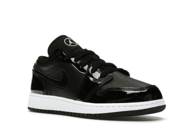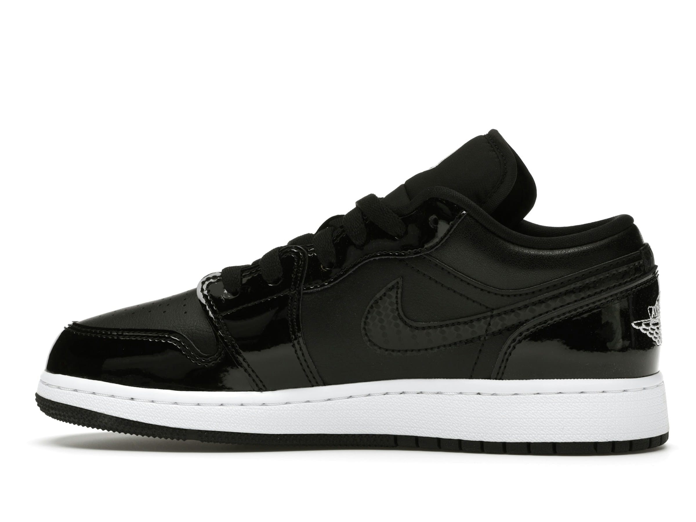 Experimenta las icónicas Air Jordan 1 Low en una edición especial All-Star. Estas zapatillas de talla primaria (GS), lanzadas en 2021 para conmemorar el Fin de Semana All-Star de la NBA, ofrecen una combinación única de estilo y rendimiento. Fabricadas con una mezcla premium de cuero y nailon, estas zapatillas lucen un diseño elegante, predominantemente negro. El acabado negro brillante en el talón, la puntera y los cordones crea un contraste impactante, que contrasta a la perfección con la parte superior y los laterales en negro mate. El brillante logo Nike añade un toque de sofisticación, mientras que el nítido logotipo blanco de Air Jordan en el talón y la entresuela proporciona un toque limpio y llamativo. La resistente suela exterior negra completa el look. Las Air Jordan 1 Low SE All-Star (2021) GS son más que unas simples zapatillas; son una pieza clave. Su ajuste cómodo y el diseño clásico de Air Jordan las hacen perfectas para el día a día, mientras que su edición especial te garantiza destacar entre la multitud. Con una silueta atemporal actualizada para un público moderno, estas zapatillas combinan un estilo icónico con una calidad excepcional.