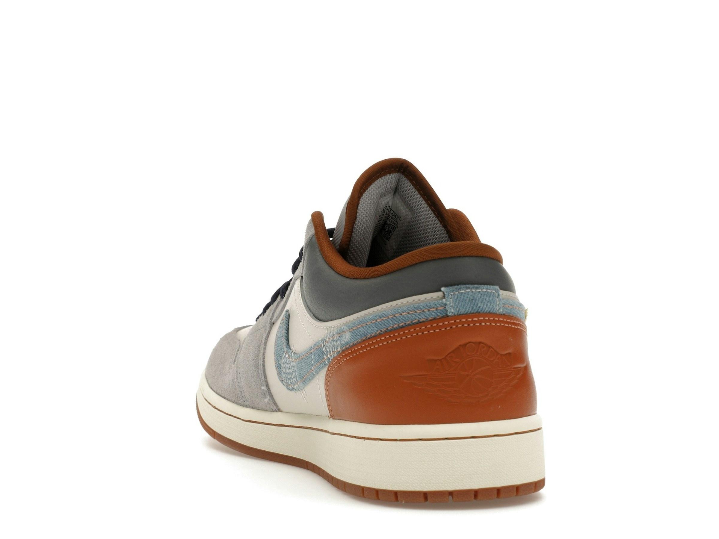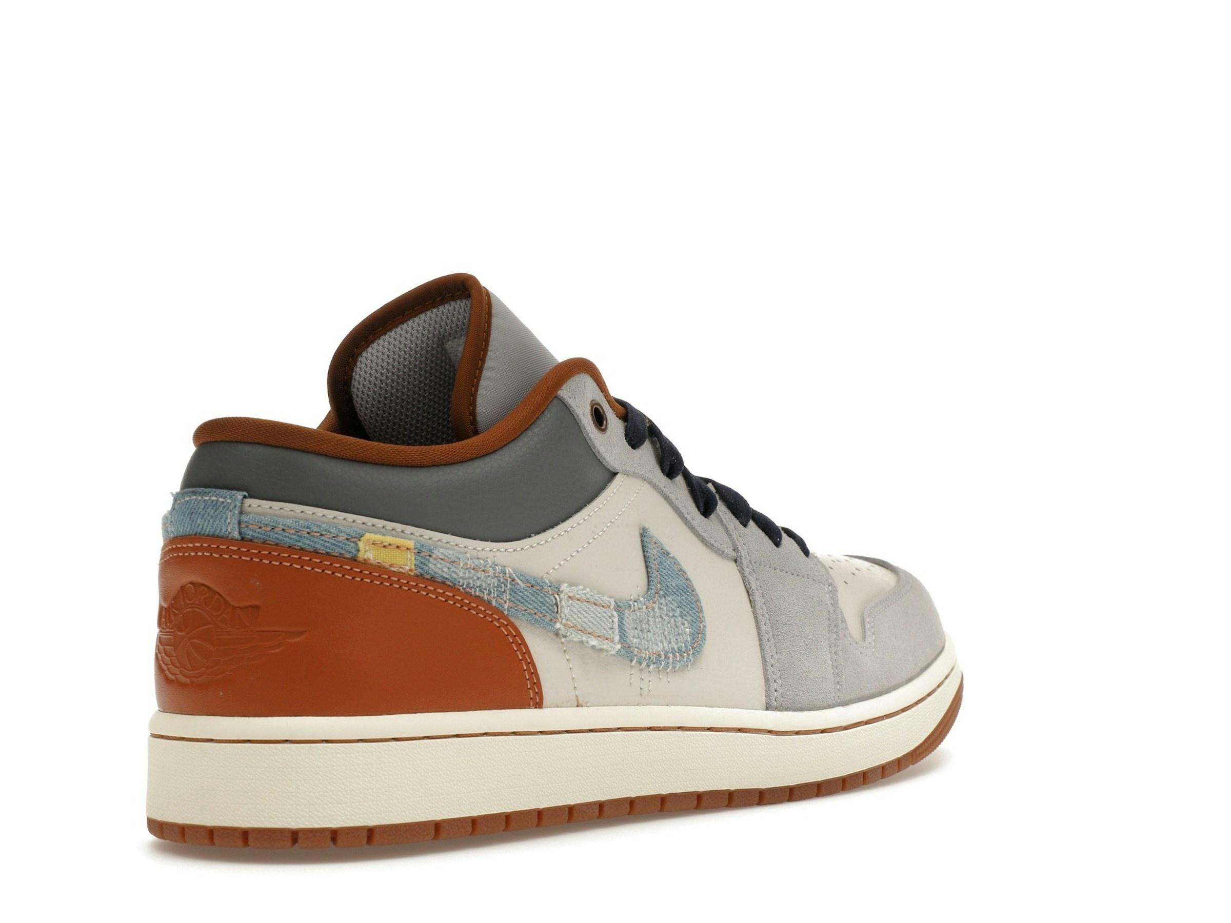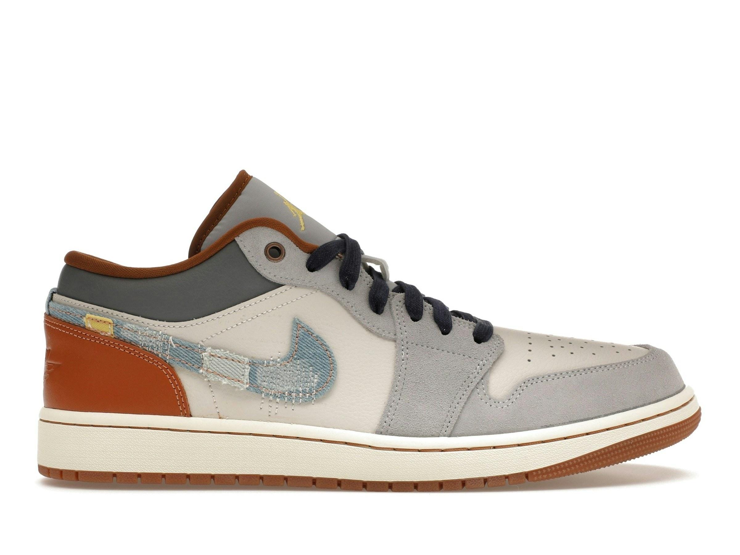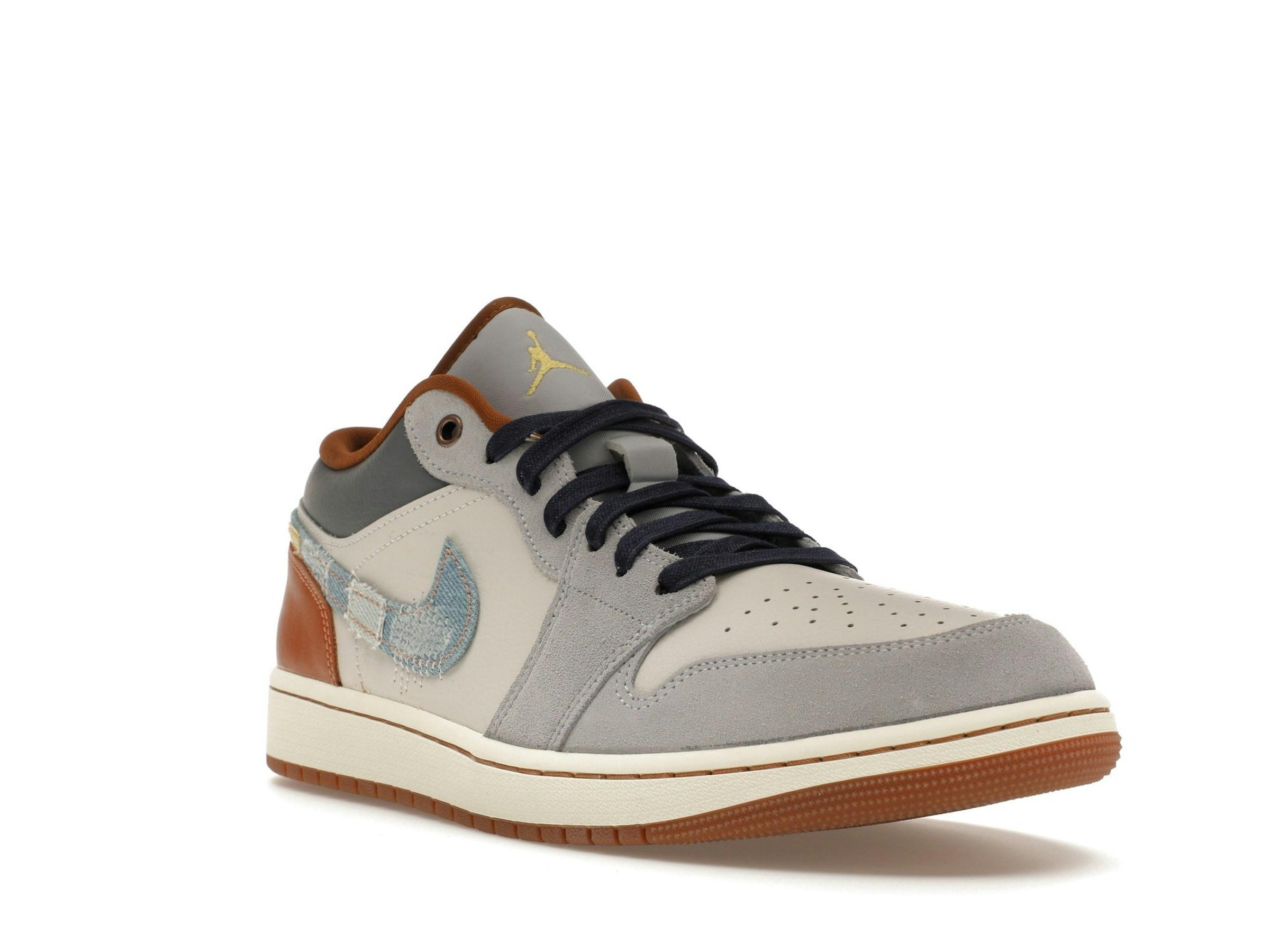 Experimenta el estilo único de las Jordan 1 Low SE Phantom Repaired Denim Swoosh, unas zapatillas de edición limitada que combinan a la perfección un diseño clásico con detalles innovadores. Esta obra maestra de caña baja presenta una parte superior de cuero premium en un sofisticado Off-White, complementada con sutiles superposiciones de gamuza cerca del antepié y los paneles, formando una elegante estructura de cordones Phantom. El lujoso cuero continúa en el cuello en un tono Phantom a juego, mientras que la lengüeta del talón añade un toque de calidez con su cuero Amber Brown. La característica más destacada de estas Jordan 1 Low es, sin duda, el llamativo Swoosh de mezclilla. No se trata de un Swoosh cualquiera; es una cautivadora combinación de mezclilla desteñida y desgastada en una variedad de tonos: Índigo tradicional, Índigo lavado y Amarillo desteñido, que le aportan una estética vintage única. Este llamativo detalle convierte a estas zapatillas en un imprescindible tanto para coleccionistas como para amantes de las zapatillas. La paleta de colores neutros de Off-White, Phantom y Amber Brown crea un efecto sofisticado, permitiendo que el Swoosh denim brille con luz propia.