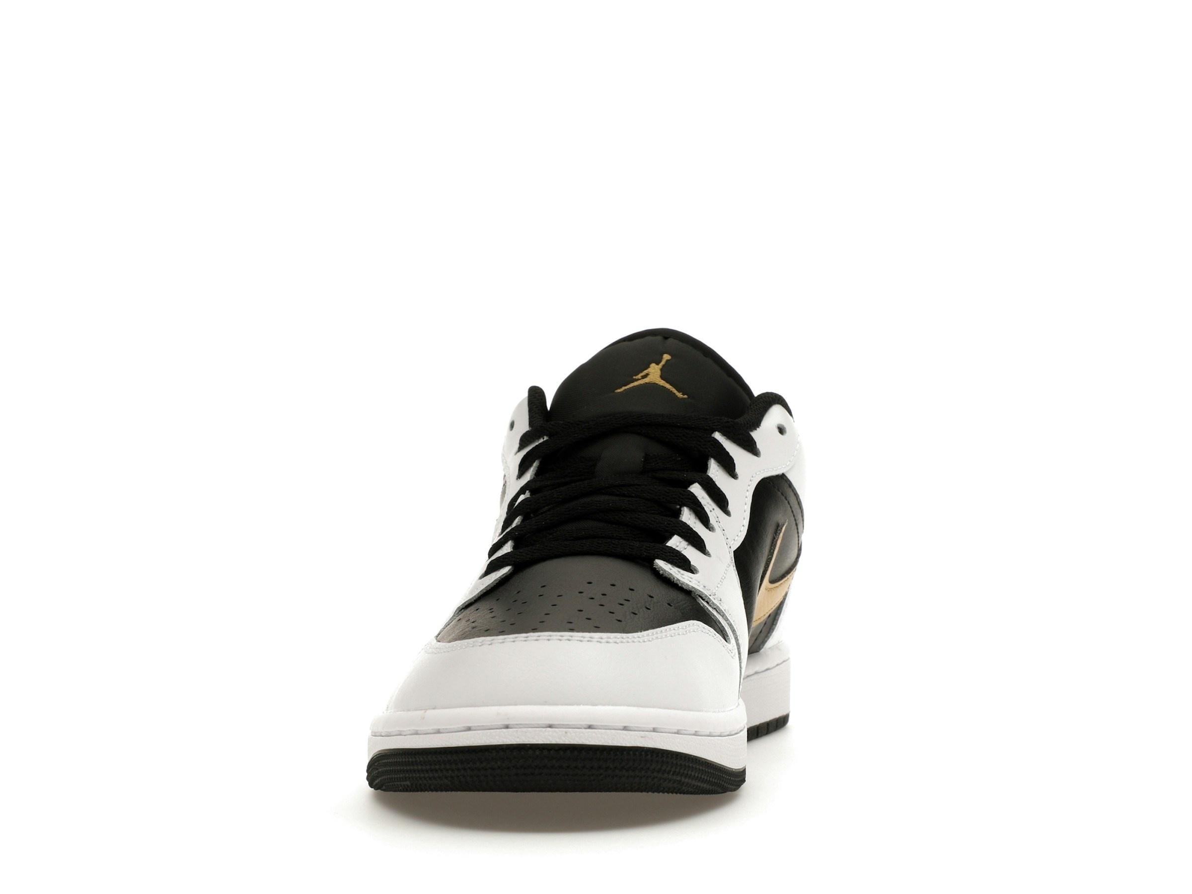 Palabras clave: Jordan 1 Low, White Black Metallic Gold Swoosh, Zapatillas de cuero, Jordan 1, Zapatillas, Estilo de vida, Marca Jordan, 553558-172, Air Jordan 1 Low, Swoosh dorado, Zapatillas blancas y negras