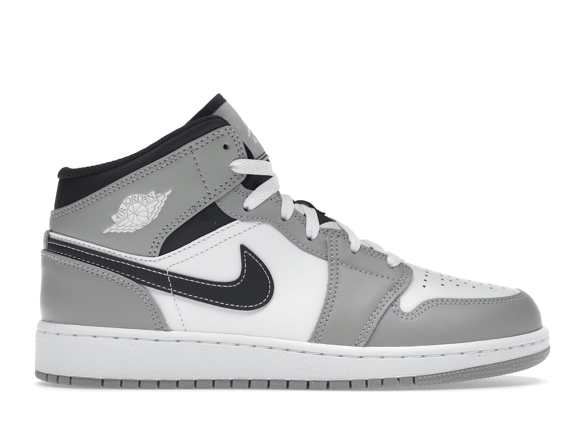 Estas zapatillas Air Jordan 1 Mid Light Smoke Grey (GS) ofrecen una opción elegante y cómoda para los jóvenes amantes de las zapatillas. Diseñadas para tallas de primaria, estas zapatillas lucen una cautivadora combinación de colores que combina gris, negro, antracita y blanco.