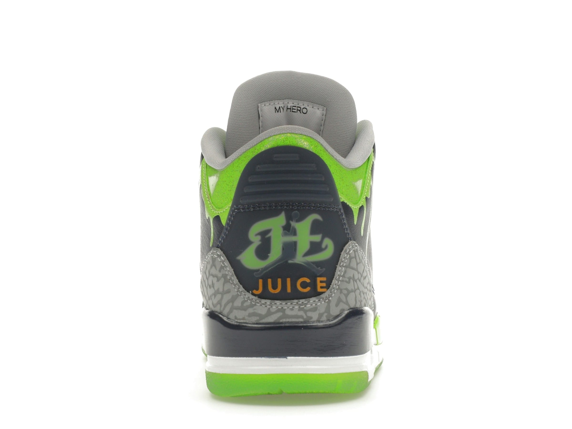 Las Jordan 3 Retro Doernbecher Hugo (FZ3030-919) son un lanzamiento destacado de la colección Doernbecher Freestyle XIX. Diseñadas por Hugo Covarrubias Molina, estas zapatillas únicas se inspiran en sus adorados Seattle Seahawks, lo que resulta en una llamativa combinación de colores. La parte superior de cuero azul marino se acentúa con superposiciones de estampado de elefante gris y un vibrante patrón de gotas en verde slime, creando un look dinámico y llamativo. Los cordones que brillan en la oscuridad añaden un toque divertido e inesperado. Una pestaña transparente en el talón muestra el logotipo personalizado de Hugo, un Jumpman en relieve y su apodo, «Juice», lo que le da un toque personal al diseño. Para realzar aún más su diseño especial, la suela translúcida incorpora el mensaje inspirador «It’s OK to be different» (Está bien ser diferente), que refleja el espíritu del programa Doernbecher Freestyle. La inclusión de una etiqueta colgante chapada en oro de 24 quilates, diseñada para usarse como colgante, convierte la zapatilla en una auténtica pieza de colección. Las Jordan 3 Retro Doernbecher Hugo son un testimonio de la creatividad, la individualidad y el poder de la colaboración. Estas Jordan 3 Retro presumen de una estética única, que combina la silueta clásica con el estilo distintivo de Hugo y el audaz uso del color. El apodo «Juice» y su efecto de goteo personalizado las convierten en unas zapatillas verdaderamente memorables, consolidando su lugar como una pieza de colección muy codiciada dentro de la marca Jordan y las colecciones Doernbecher Freestyle.