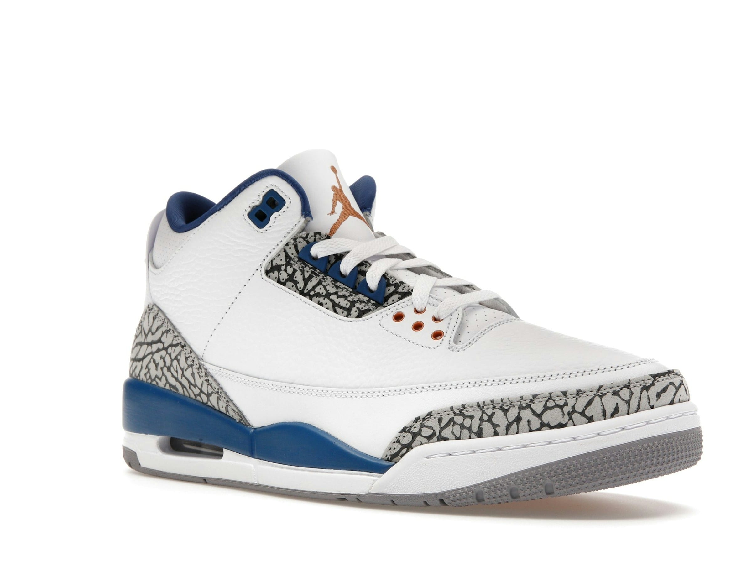 Las Jordan 3 Retro Wizards lucen una silueta familiar, pero con diferencias clave que las distinguen. Observa los vibrantes detalles en naranja en los ojales de los cordones y el logotipo Jumpman en la lengüeta, una elegante diferencia con respecto a los detalles rojos de las True Blue. Este sutil cambio de color crea una estética única, perfecta para quienes aprecian una mezcla de estilo clásico y contemporáneo.