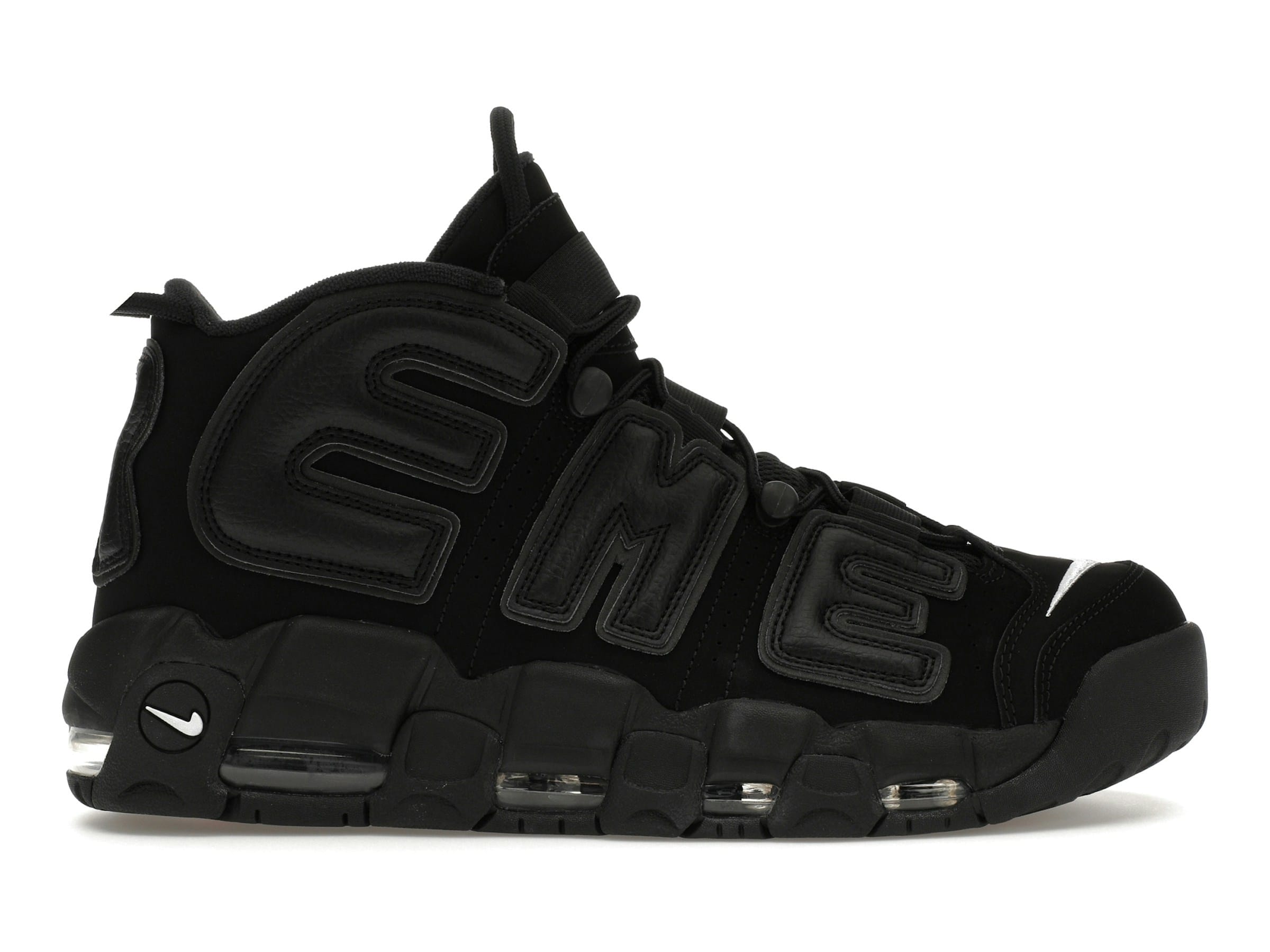 Los detalles incluyen un elegante Nike Swoosh blanco sutilmente colocado en la puntera y los laterales de la entresuela, que contrasta a la perfección con la parte superior negra. Las Air More Uptempo Supreme Suptempo Black, lanzadas originalmente el 27 de abril de 2017, siguen siendo una pieza de colección muy codiciada y un básico para los amantes de las zapatillas. Su combinación de diseño clásico y comodidad moderna las convierte en una opción atemporal.