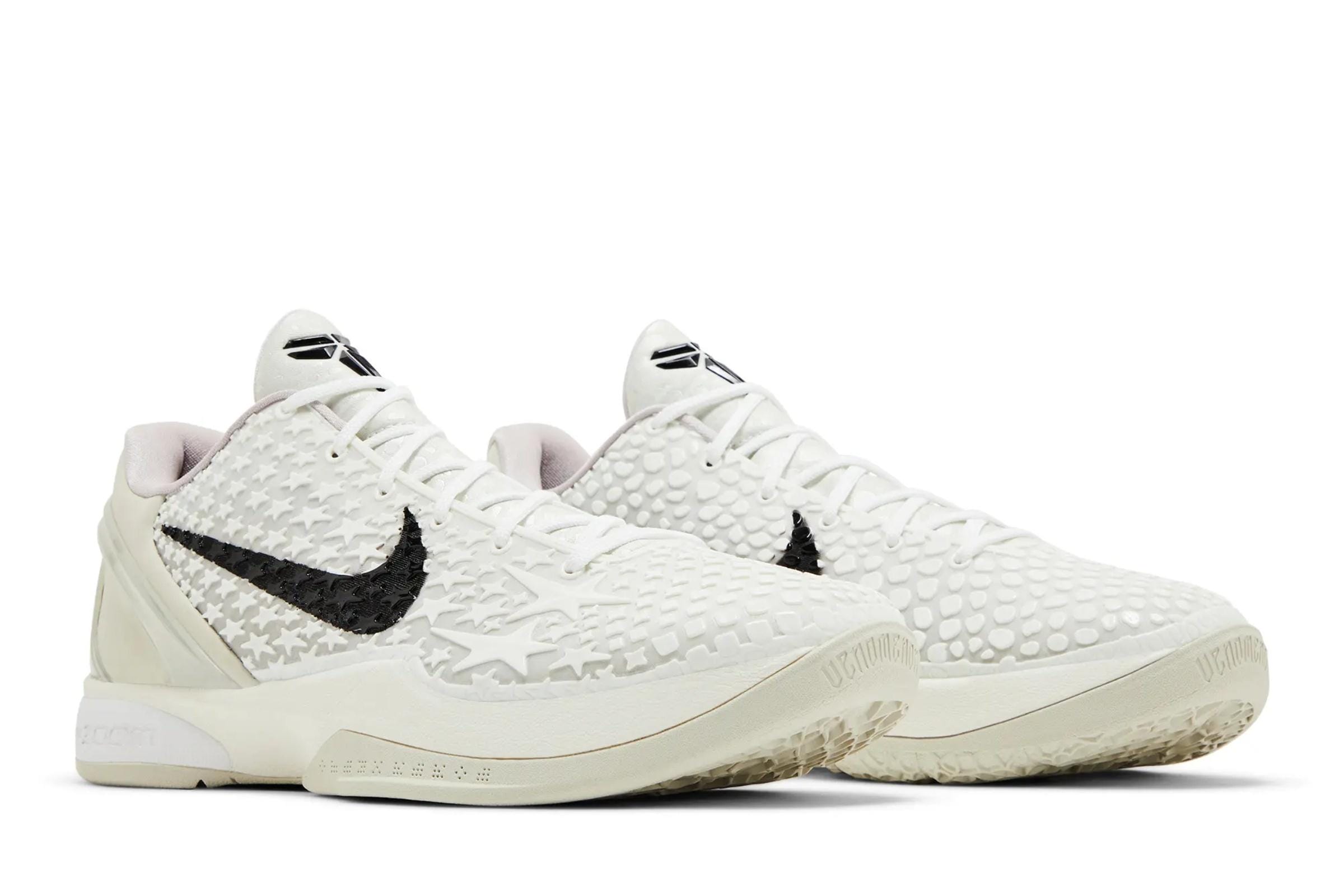 Características principales: Nike Zoom Kobe 6 Protro, combinación de colores Sail/Black, FQ3546-100, parte superior de tela premium, estrellas de poliuretano en relieve, diseño de piel de serpiente, unidad Zoom Turbo, entresuela Cushlon.